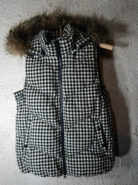> to5497 GAP ギャップ ジップ パーカー ダウン ベスト チェック デザイン フード+ファー脱着可能 人気