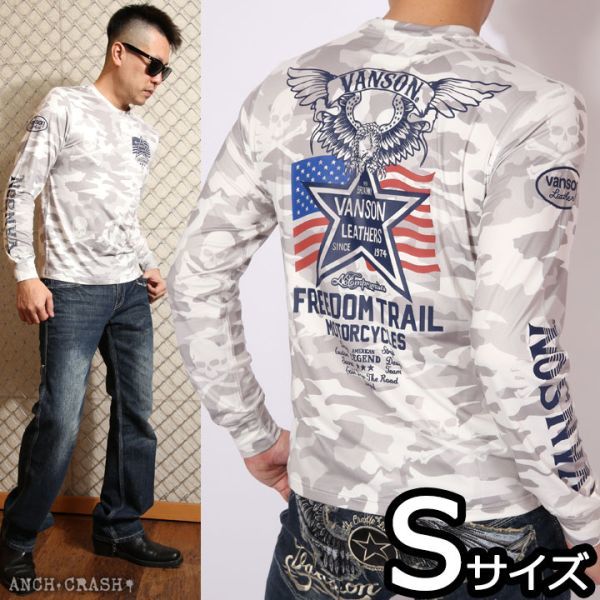 - VANSON ドライ長袖Tシャツ ACVL-905 ホワイトカモ【Sサイズ】バンソン 当店別注 吸汗速乾 抗菌防臭 UVカット バイカー