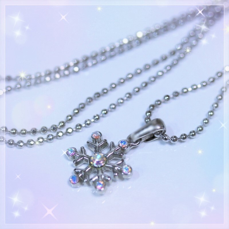 > N2762/雪の結晶ネックレス 最高品質スワロフスキーラインストーン使用 オーロラ 虹色 上質綺麗な日本製のスノーフレークペンダント
