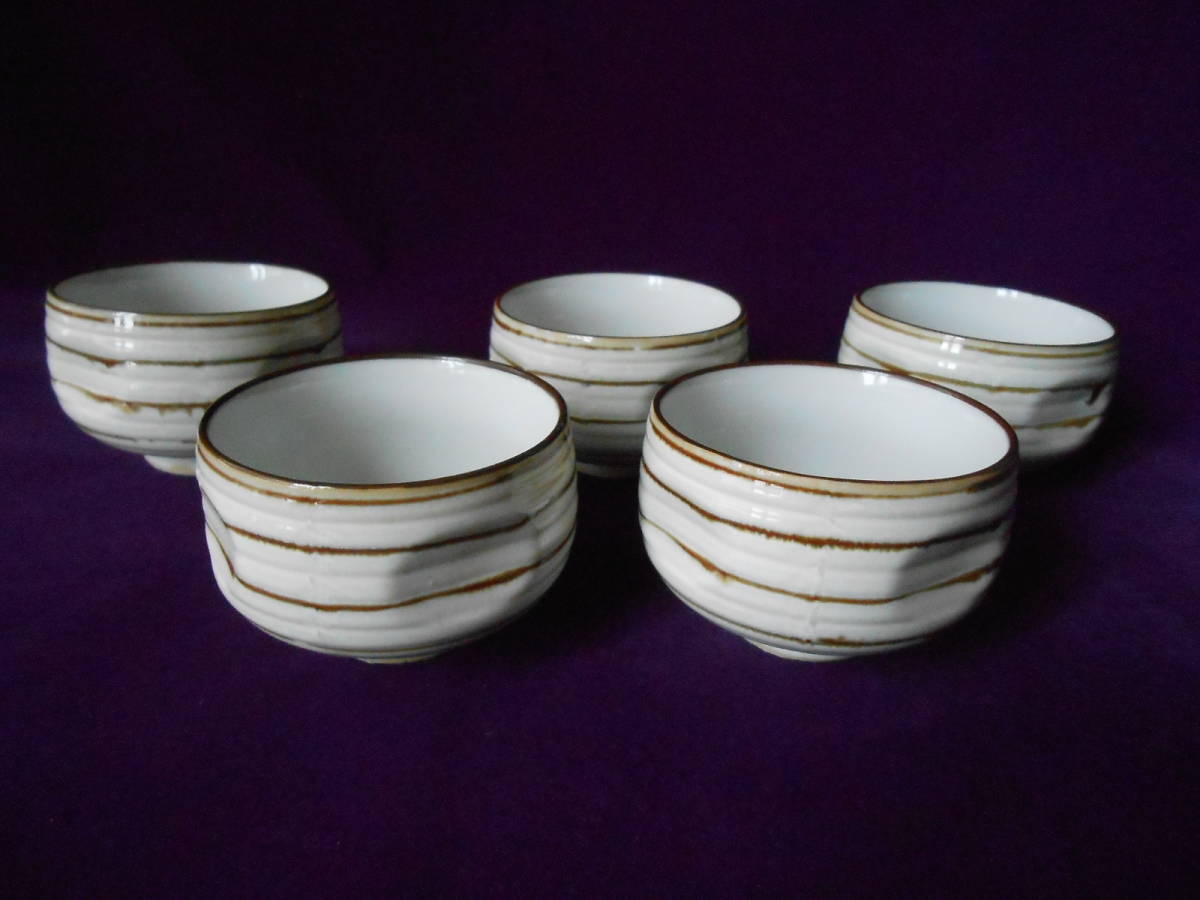 - 美濃焼! ☆縞汲出5客セット☆ 未使用 煎茶 汲出 茶器 ゆのみ 湯飲 日本茶 ほうじ茶 ギフト