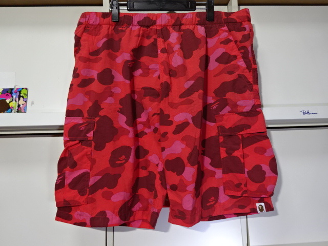 > 初期 BAPE【M】ナイロン カーゴハーフパンツ 水陸両用 カラーカモ 猿迷彩 レッドカモ A BATHING APE エイプNIGO アーカイブ ボードショーツ