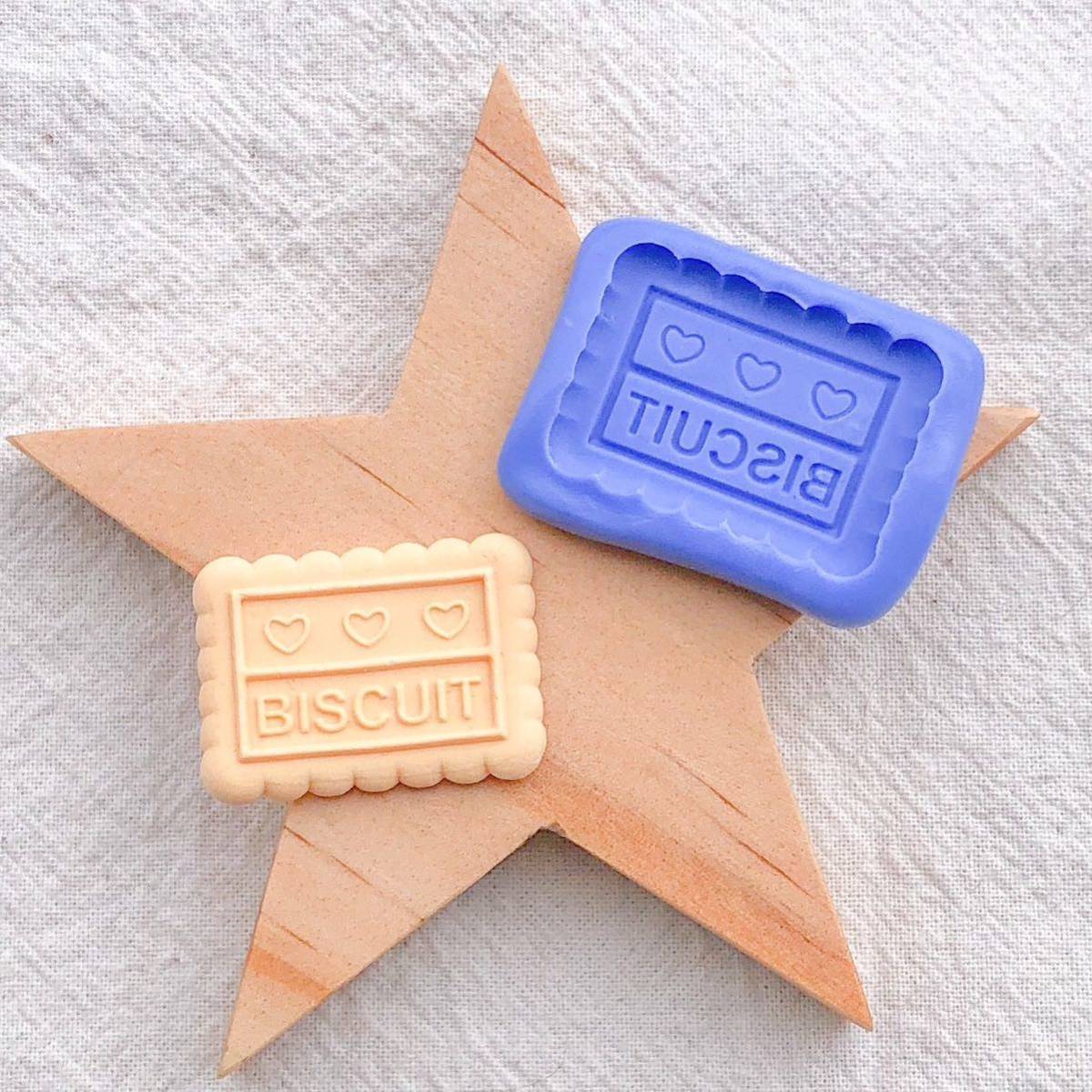 > 298 ロゴ ビスケット型 デコ パーツ スイーツ 樹脂粘土 ブルーミックス シリコン モールド ハンドメイド クリームサンド クッキー
