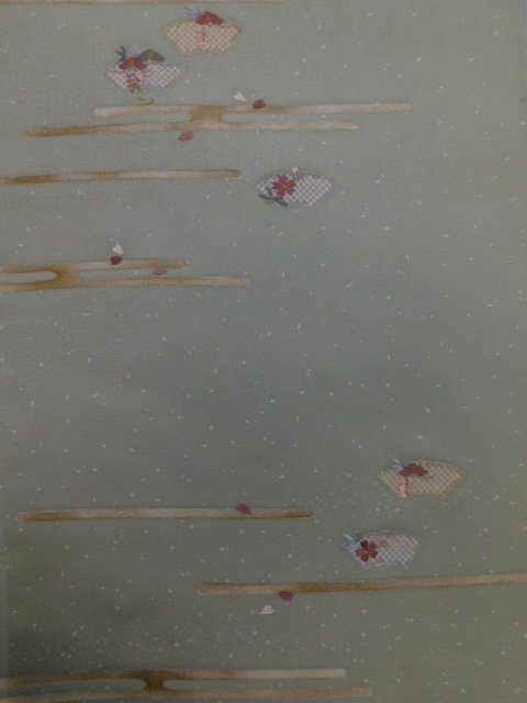 - 付下げ 手描き友禅に手刺繍 桜に松 新品反物 楽布特選 P13476 ft