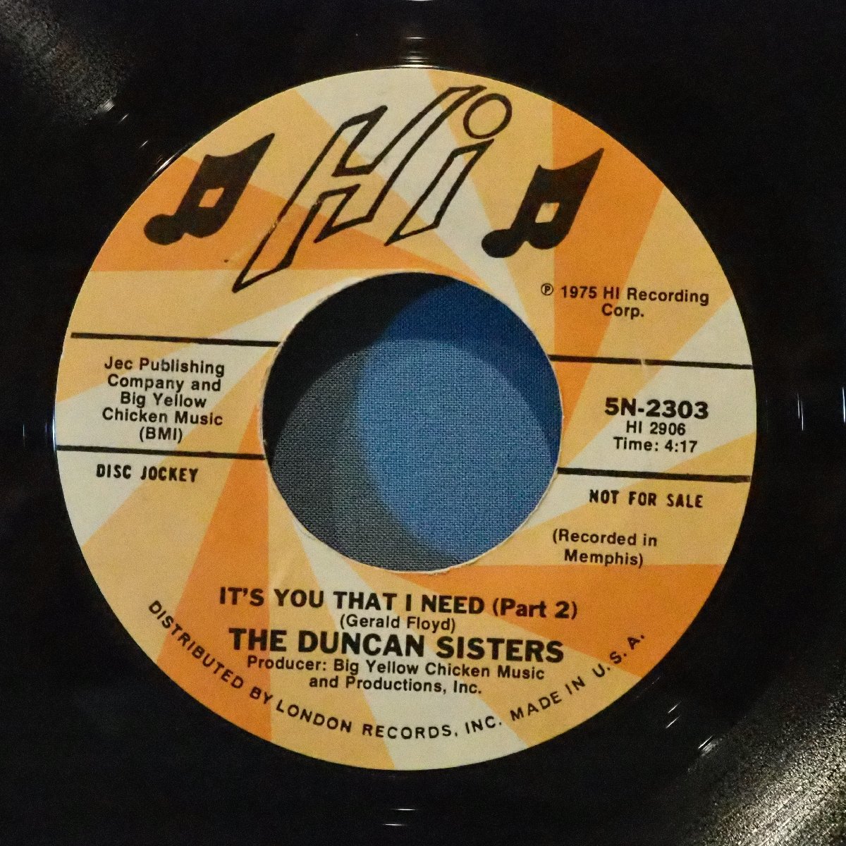 > ■45’s シングル盤 75年 HI PROMO ★DUNCAN SISTERS/ITS YOU THAT I NEED★送料無料(条件有り)多数出品中!★オリジナル名盤■