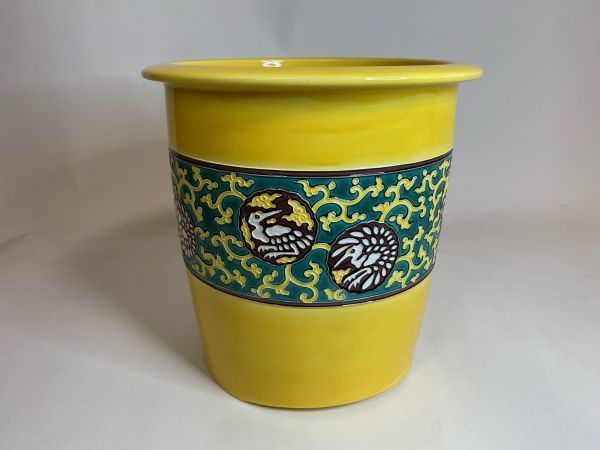 - 【雪華】十六代 永楽 即全 善五郎 黄交趾 鶴丸 火鉢 手炙り 共箱 茶道具
