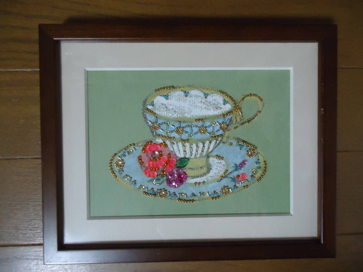 - ♪作品整理♪ビーズデコール♪「パルファン デュ テ」♪ティーカップ♪額付き♪ビーズアート♪水彩画風♪インテリア♪雑貨♪壁掛け♪完成品