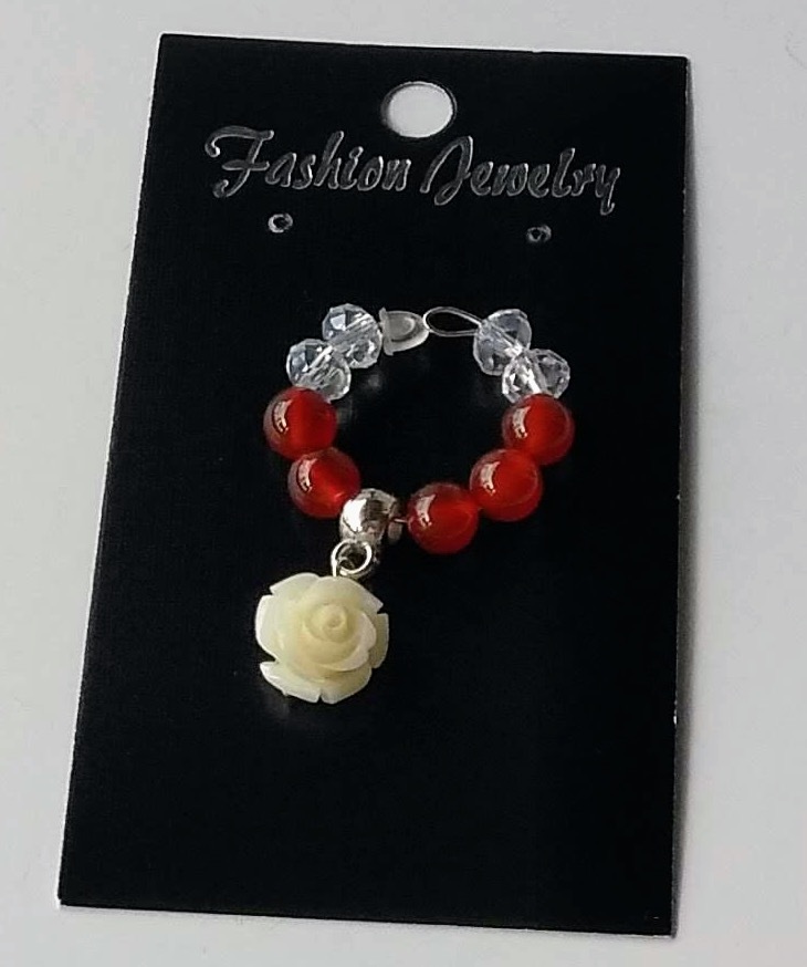 - 天然石イヤーカフ(片耳イヤーホール用)カーネリアン・練りサンゴ薔薇