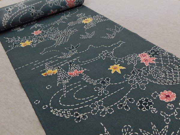> 小紋 京都 木崎 製 型絵染め 解き洗い品 反物 リ・オーダー c 楽布特選P8672