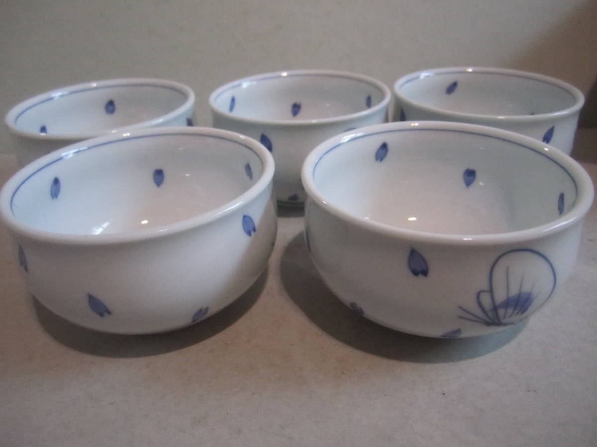 - 有田焼 掛呑窯 サクラと蝶柄 茶碗 5コ
