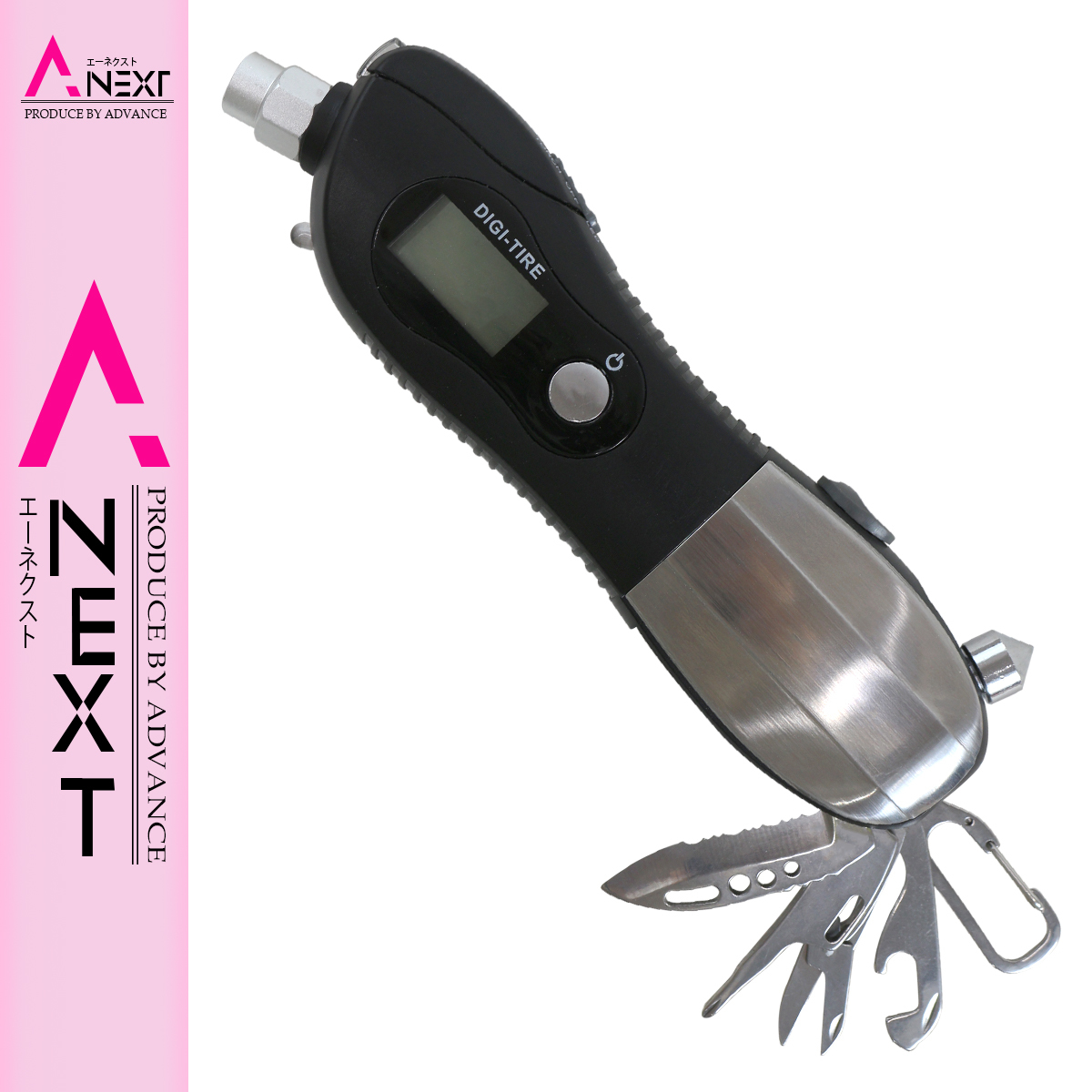 - 多機能 デジタル タイヤ 空気圧計測器 5in1 マルチ エア ゲージ 懐中電灯 ガラス割れハンマー 工具ツール ドライバー ハサミ 車載工具