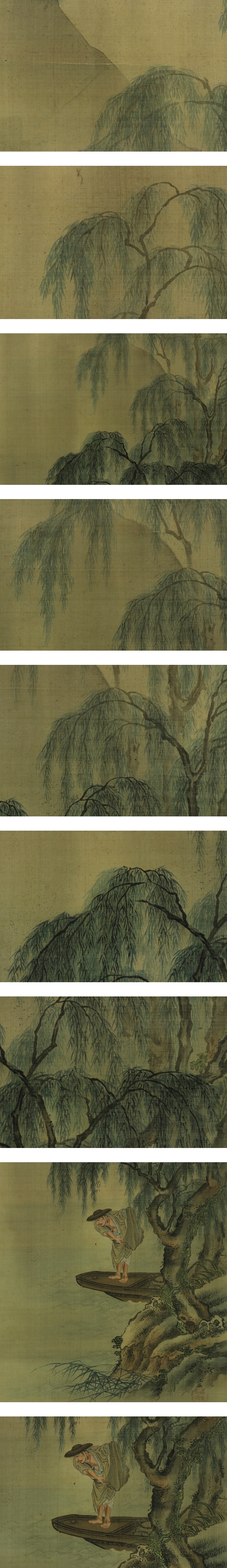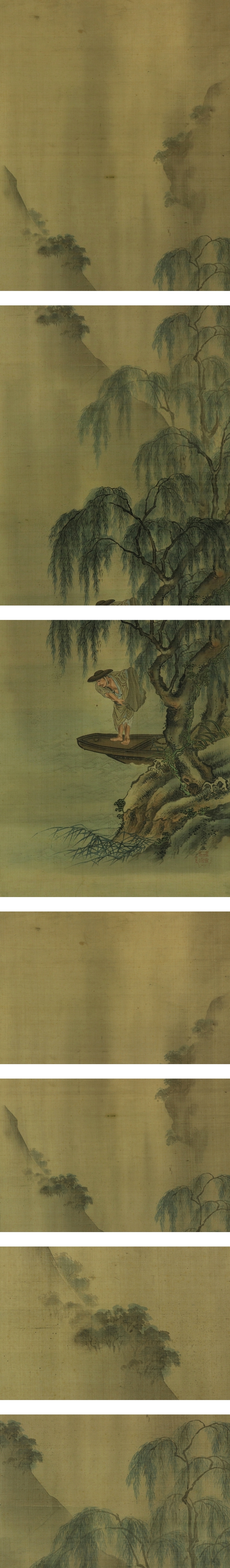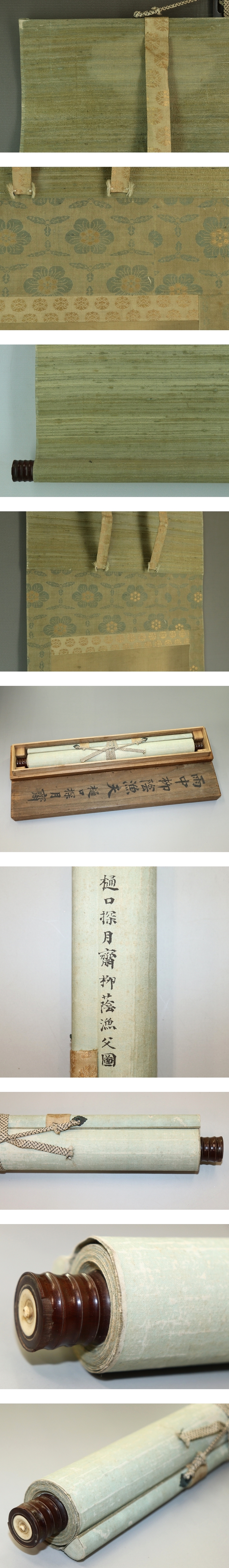 - 名品【真作】樋口探月【雨中柳陰漁夫】◆絹本◆合箱◆掛軸 u10059