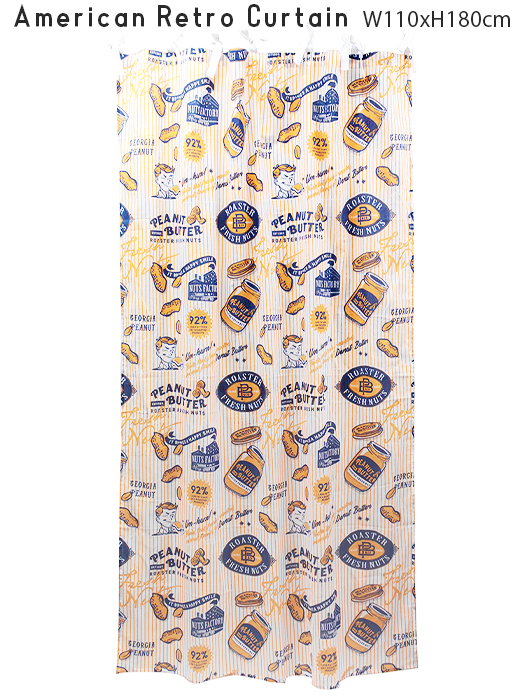 - レトロ カーテン 1枚 110×180cm (ピーナッツ) 紐 薄手 間仕切り 目隠し のれん コットン 綿 大掃除 西海岸風 インテリア アメリカン雑貨
