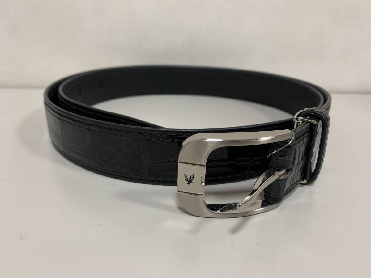 - 【質屋 尾張屋商店 東京】(3751)☆未使用☆ 本物 クロコダイル ワニ革 レザー 本革 ベルト 黒 鷲