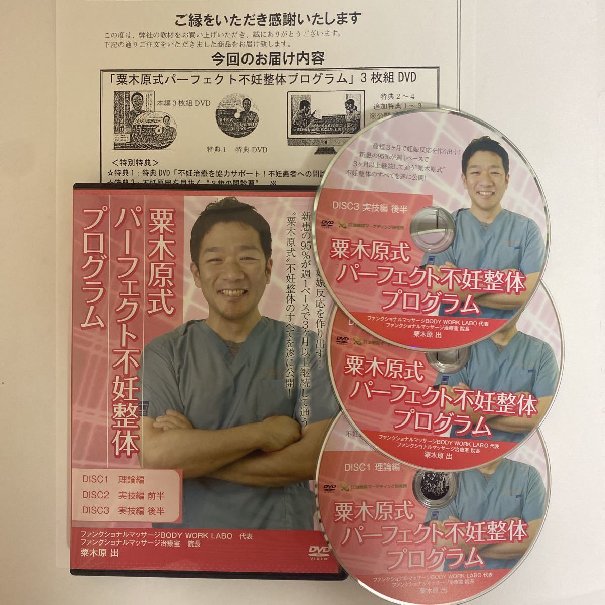 - 24時間以内発送!整体DVD本編3枚【粟木原式パーフェクト不妊整体プログラム】粟木原出★整骨 手技DVD 治療院マーケティング研究所