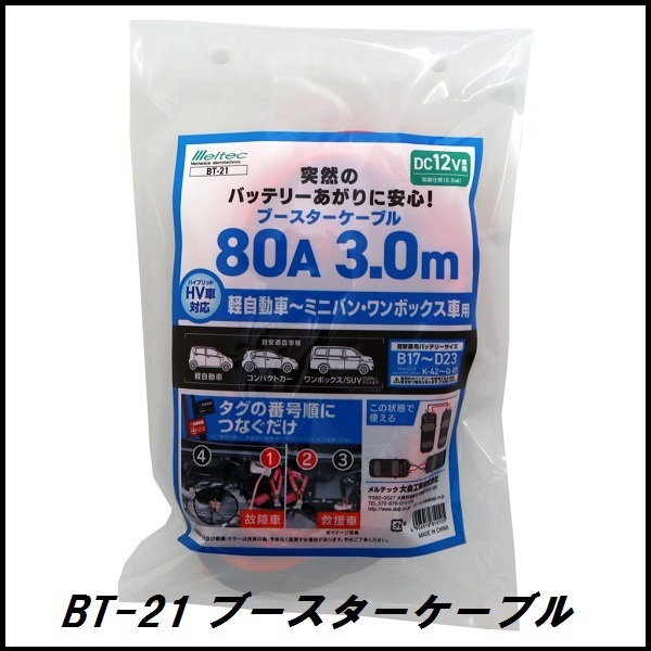 - 正規代理店 大自工業 BT-21 ブースターケーブル 80A/3メートル DC12V用 メルテック/Meltec ココバリュー