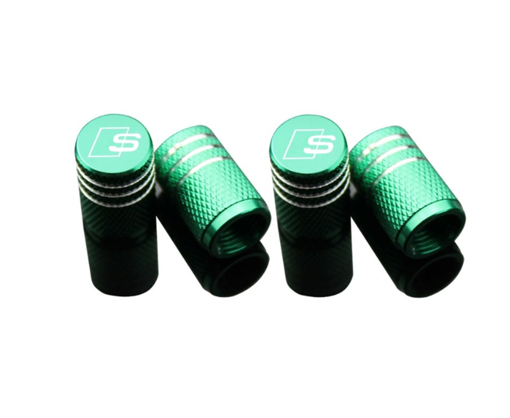 > アウディAudi S Line タイヤ エアーバルブキャップ 緑 4個 A3 S3 A4 S4 RS4 A5 S5 A6 S6 A7 S7 A8 S8 TT Q5 Q7