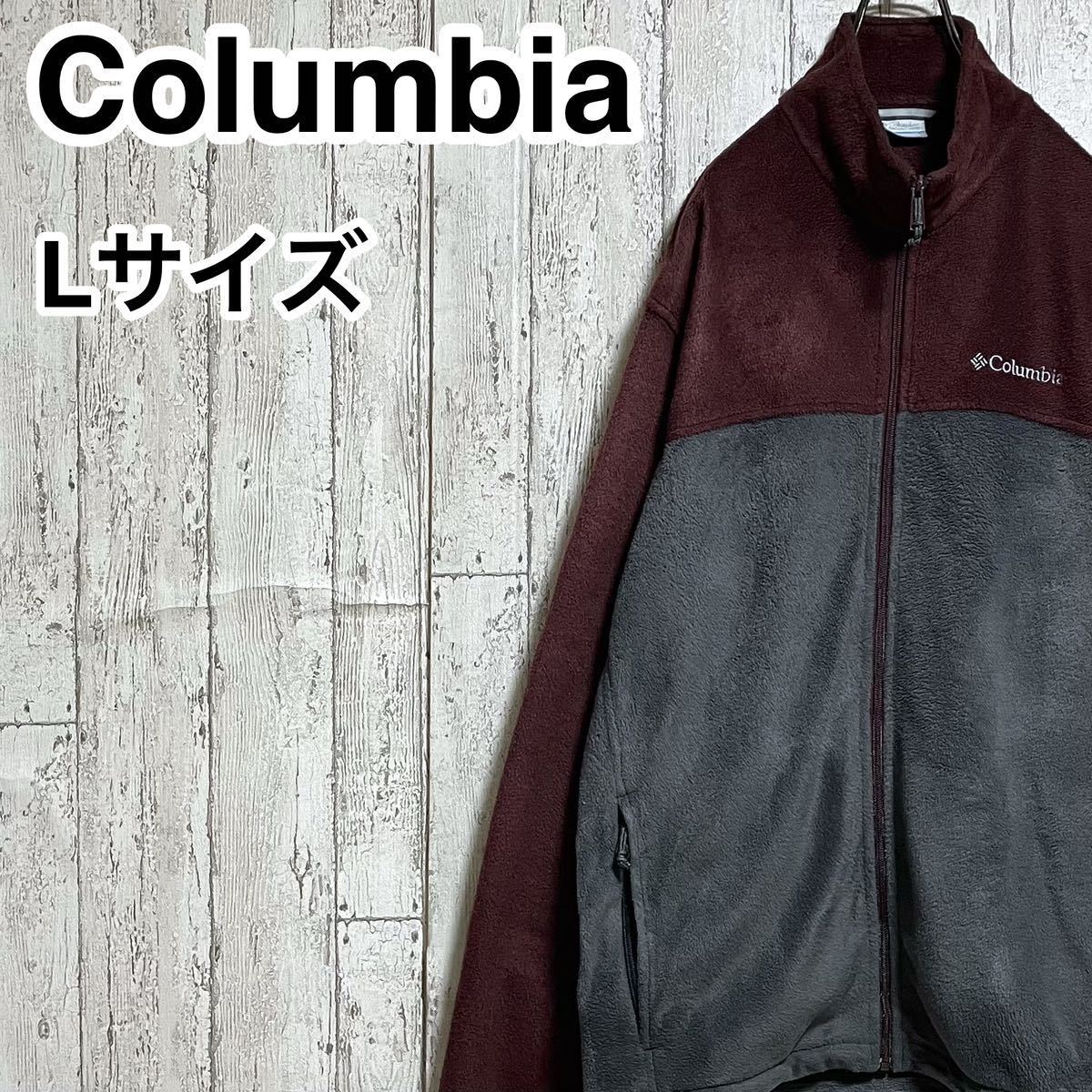 > 【定番アイテム】コロンビア Columbia フリース ジャケット ジップアップ フルジップ Lサイズ ワインレッド グレー 刺繍ロゴ 22-239