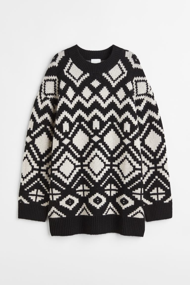 - <[新品 タグ付き H&M ジャカードニット ロング セーター 黒 柄 ニット リラックスフィット 完売 匿名発送]