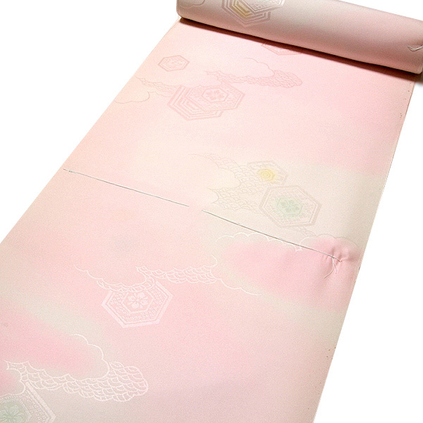 > [和楽屋] 訳あり■ボカシ染め 雲取りに亀甲 細やかな地模様 綸子 反物 正絹 長襦袢■