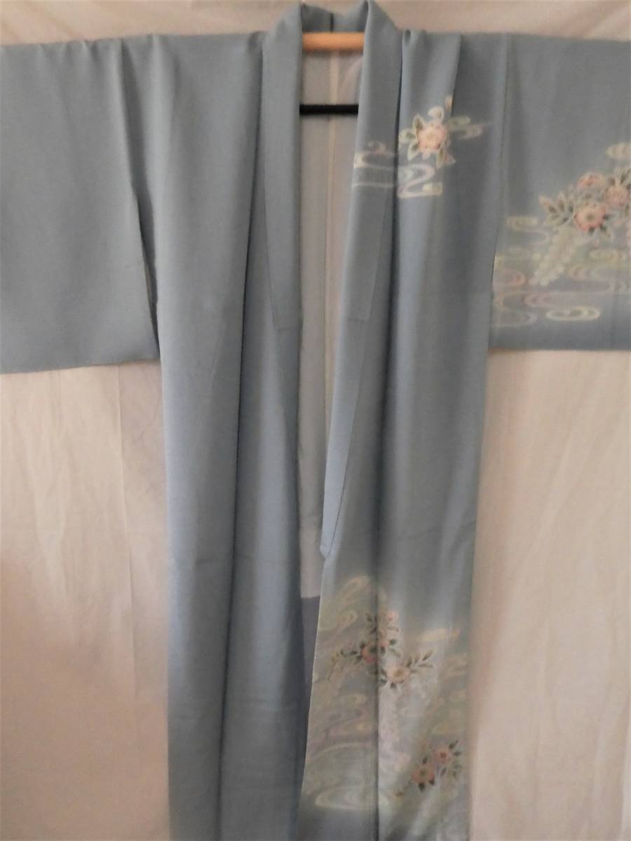 - ⑬美品 和装 着物 付下げ 水色 ブルー系 身丈約151.5㎝ 上品