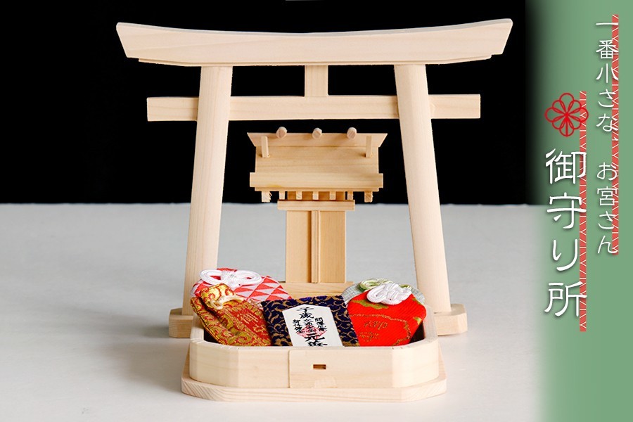 - 一番小さなお宮さん ■ 鳥居 付き 国産 総桧 ■ お守り 安置専用 神棚 ■ お守り入れ お守り置き ■ おまもり