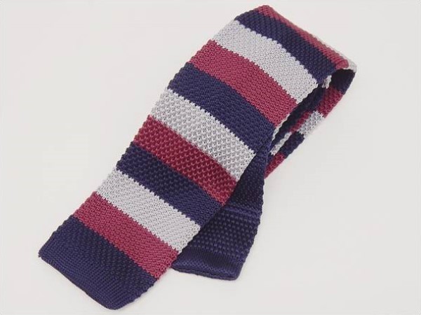 - ネクタイ ニットタイ スリム 洗濯機OK 剣先6cm 紺地 ワイン グレー ボーダー ポリエステル100% ナロータイ