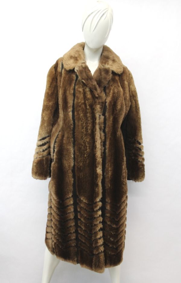 - ブラウン シェアード・ラクーン毛皮ファー・コート アメリカンサイズ6-8
