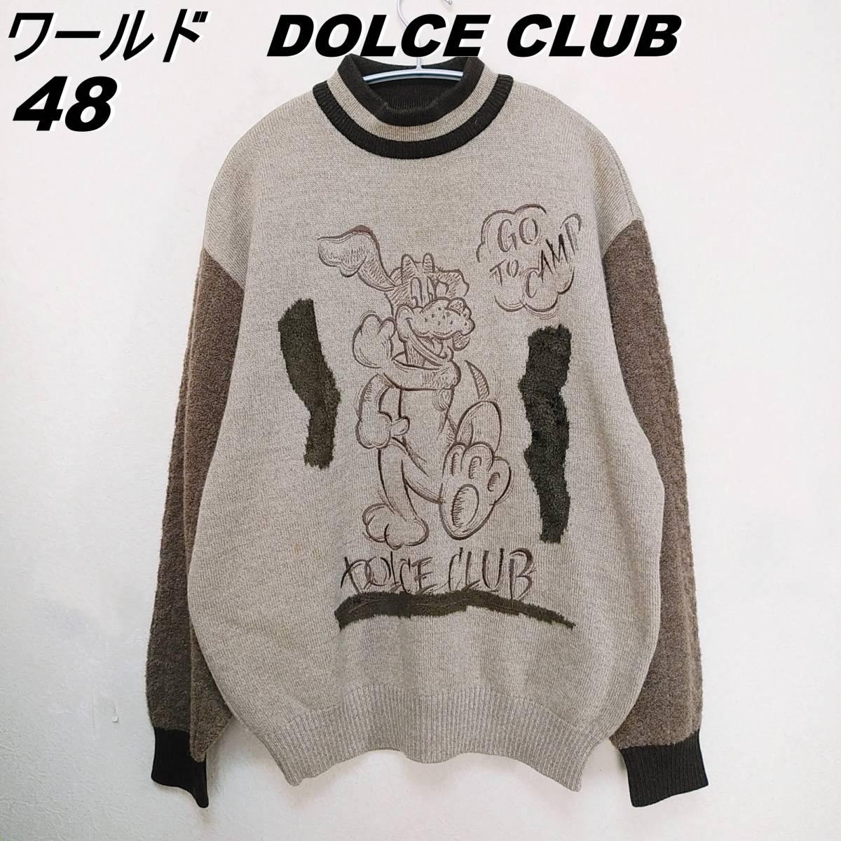 - 秋冬 DOLCE CLUB ワールド 日本製 ニット セーター 毛 犬 アニマル メンズ48 茶 ゴルフ 230106-05