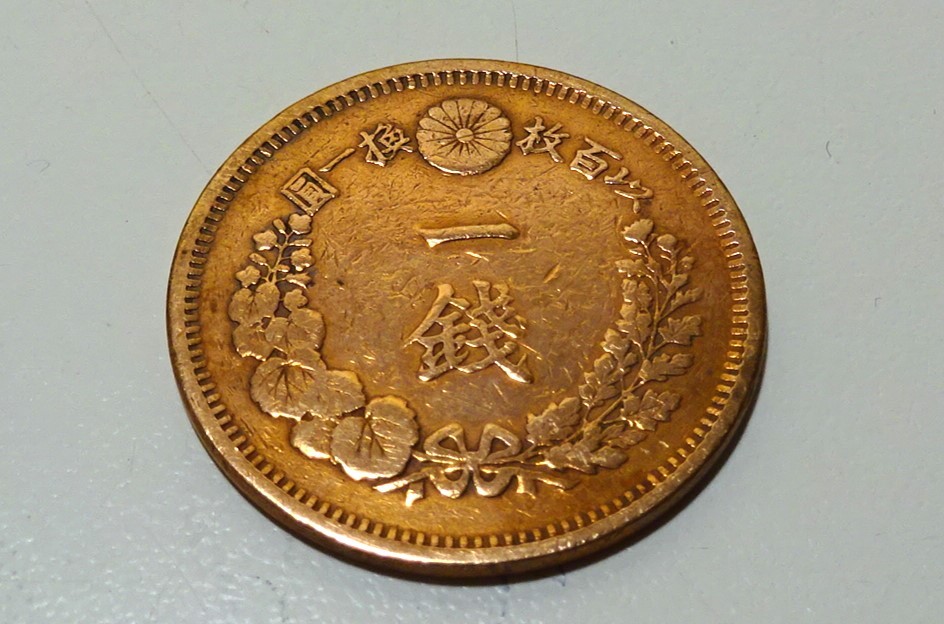 - 中古美品!!★桐1銭銅貨 明治8年 ★レトロ アンティーク 当時物