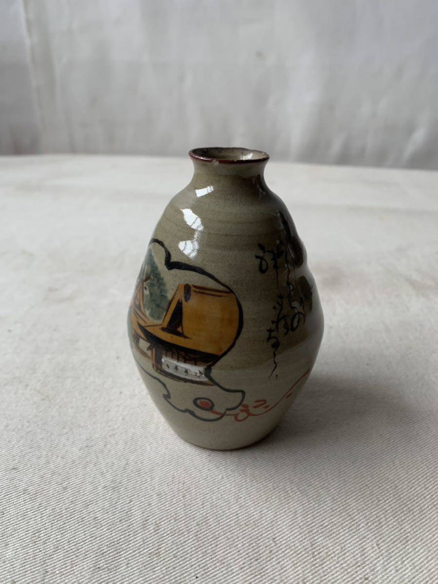 > 旧家蔵出し品 図柄が素敵な小振りな徳利 酒器焼物古物骨董古美術アンティークレトロ古道具オブジェコレクション収集陶磁器染付花器花瓶飾り