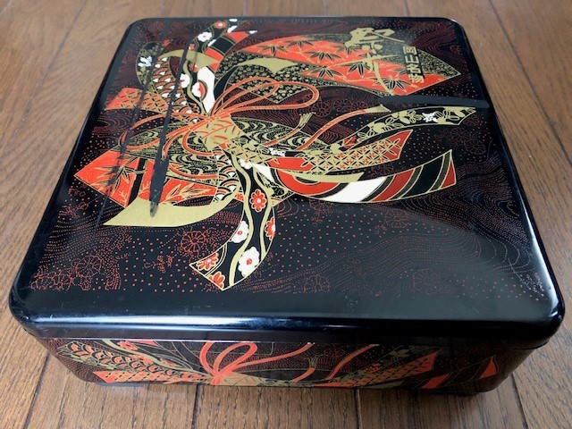 - 駅弁 弁当箱 岡山名物 祭ずし 羽衣 竹 黒 横19.5㎝ 縦19.5㎝ 高さ8㎝ 351g ばら寿司 昭和 当時物 山陽本線 送料無料 底値