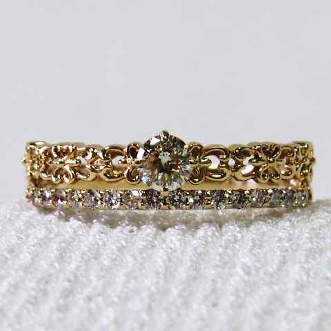 - 【値下げ交渉は質問欄より】王冠のようなデザイン☆K18YG素敵なダイヤデザインリング☆200面カットの指輪☆オシャレアクセント♪