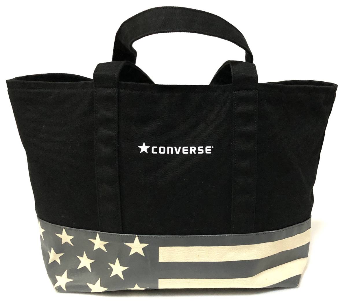 > CONVERSE コンバース キャンバストートバッグ 星条旗プリント 良品 2302023 ハンドバッグ 黒 通勤 通学 お出かけ A4収納