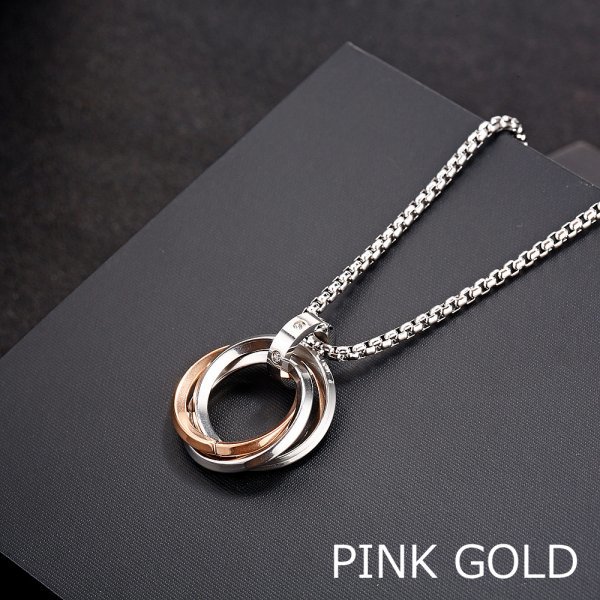 - ネックレス 3連リング トリプルリング ユニセックス メンズ レディース ステンレス シンプル プレゼント 誕生日 ペア ピンクゴールド 50cm