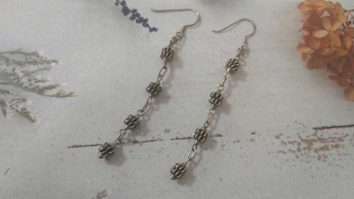 - □ゴールドカラー・小さなビーズ・揺れるロングピアス□