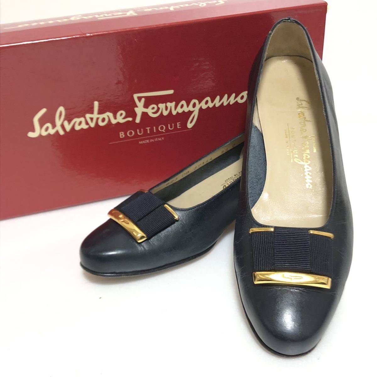 - Salvatore Ferragamo フェラガモ ヴァラ パンプス ネイビー 深い紺色 約23cm