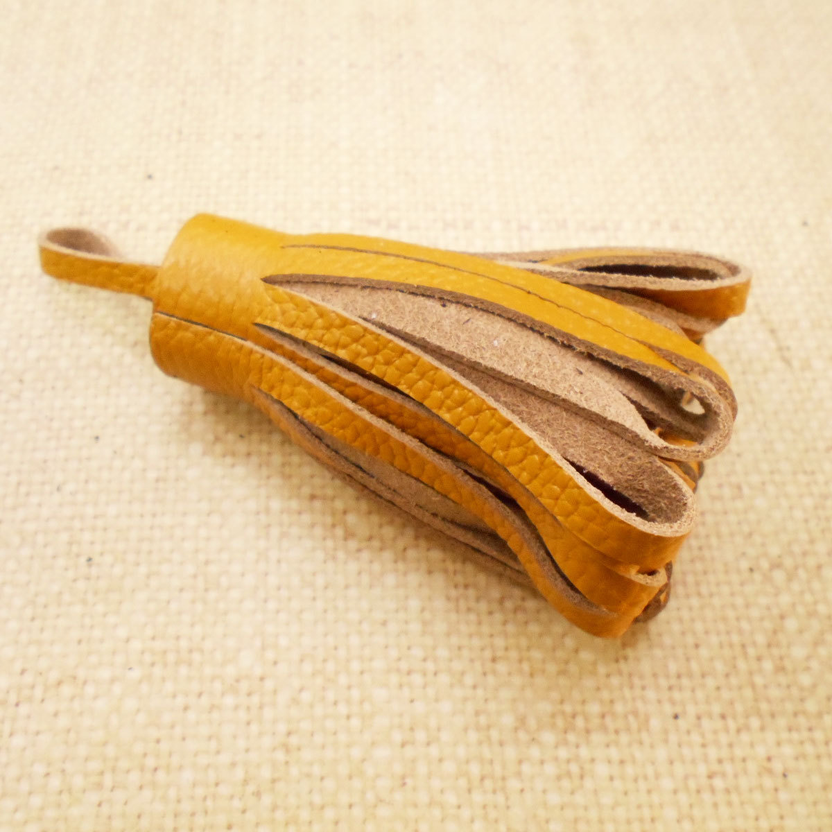 - ふんわり レザーバッグチャーム /マスタード/レディース キーホルダー タッセル 本革 リアルレザー フリンジ ボンボン
