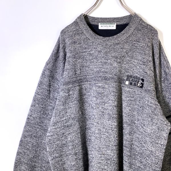 > マンシングウェア グランドスラム ゴルフウェア ウール ニットセーター 丸首 MAサイズ グレー 刺繍ロゴ 日本製 匿名配送