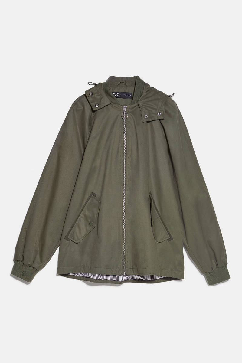 > /[美品 ザラ ZARA フード付き ジャケット ボンバー ブルゾン マウンテンパーカー カーキ オーバーサイズ 洗濯済み 匿名発送]