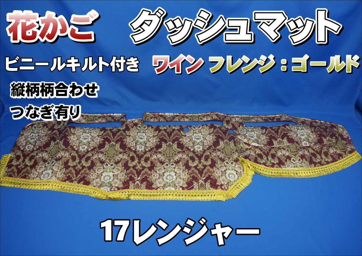 - 17レンジャー用 花かご 縦柄 ダッシュマット ビニールキルト付き ワイン/ゴールド