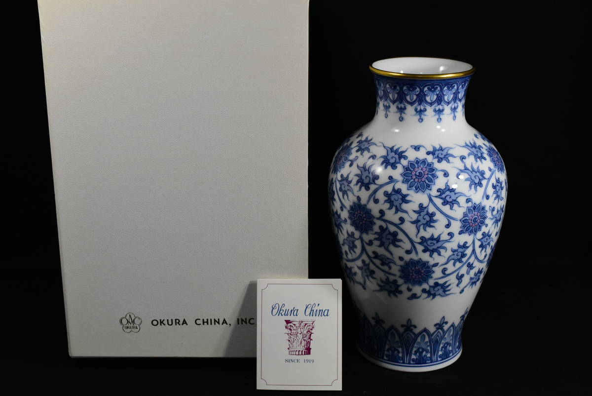 - OKURA 大倉陶園 呉須花唐草文 花瓶 高さ28㎝
