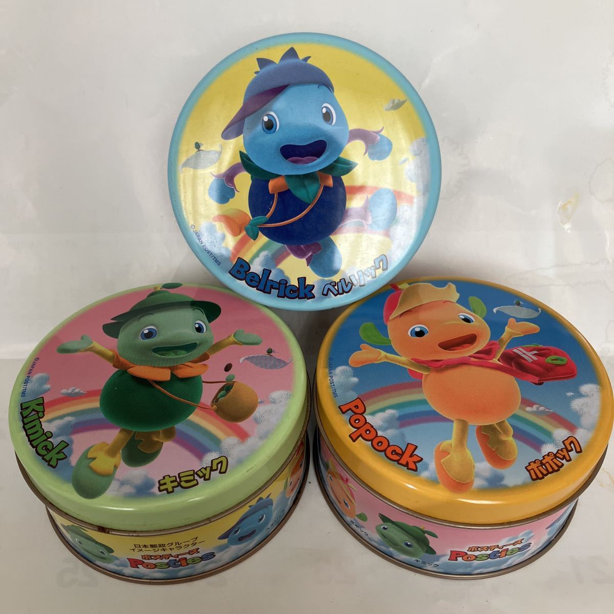 - レア ポスティーヌ 日本郵政イメージキャラクター お菓子の空き缶 缶 小物入れ 直径約8.5cm ポポック ベルリック キミック 郵便局