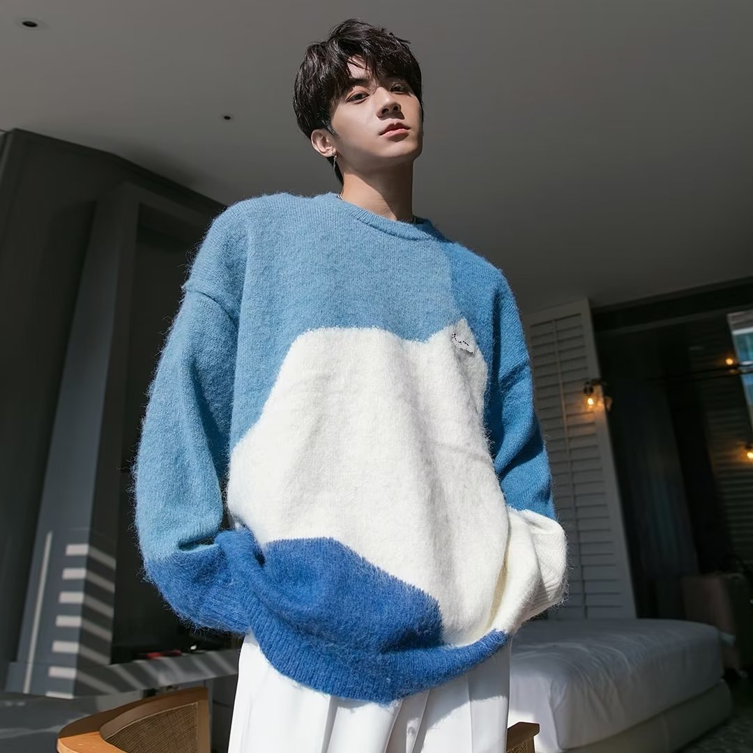 - CJM1327★秋 冬 ゆったり ニット レイジースタイル 紳士服 カラーコントラスト ラウンドネック セーター 男性 カップル服【2色可選】