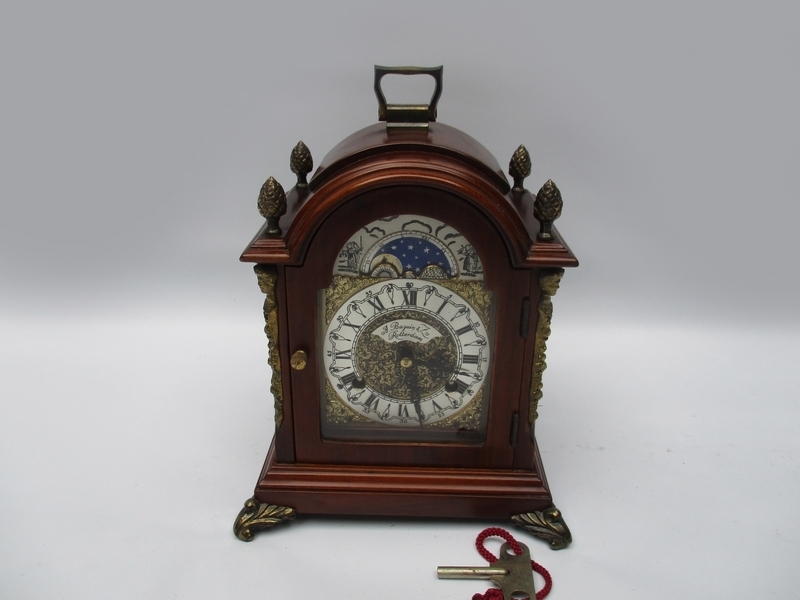 - ■置時計 [ドイツ製 FHS ]ムーンフェイズ■ ゼンマイ 天然木 動作 コレクター収集品№6862■