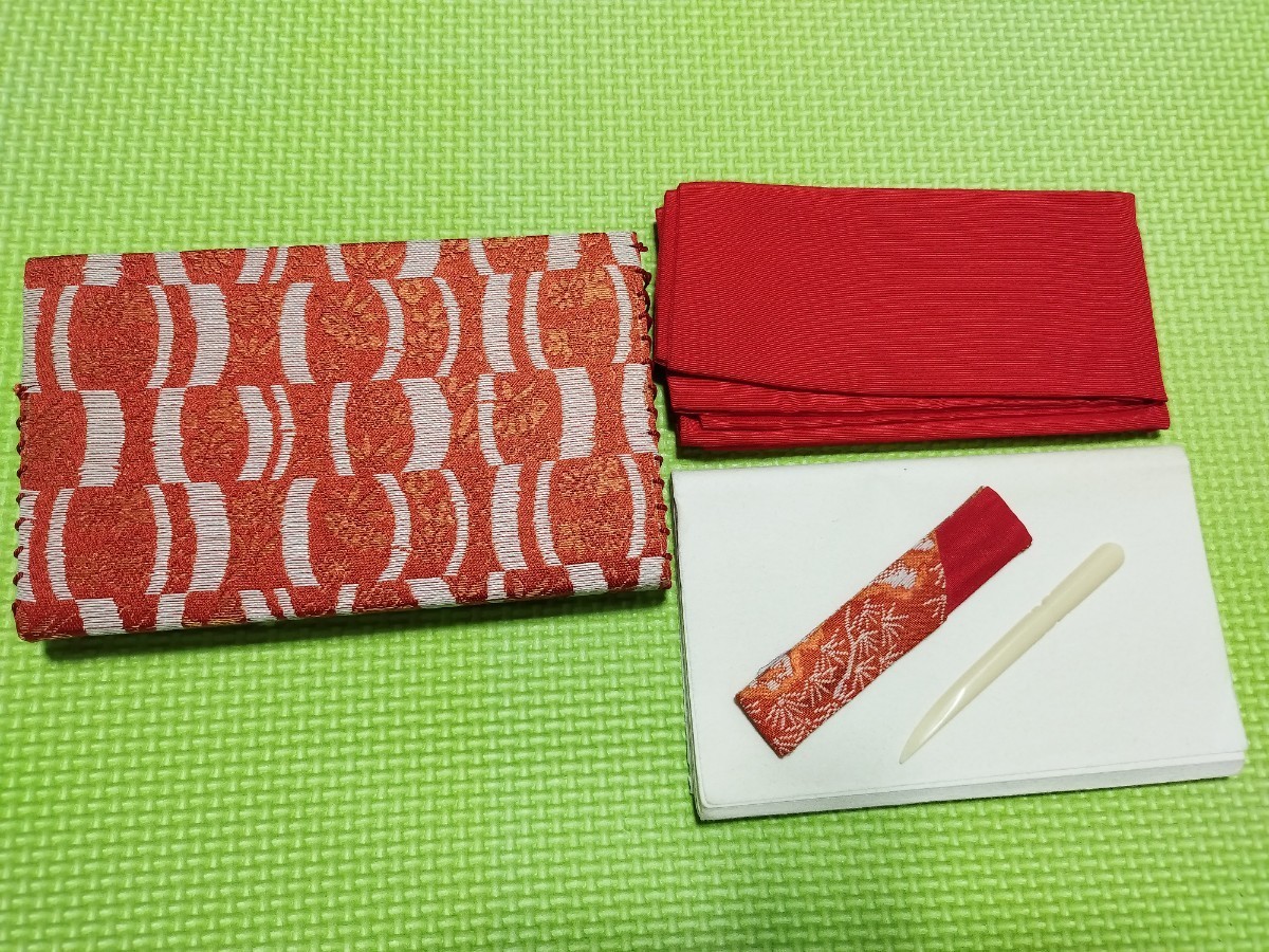 - 中古 帛紗ばさみ ふくさ挟み 懐紙付 収納袋入りの楊枝付