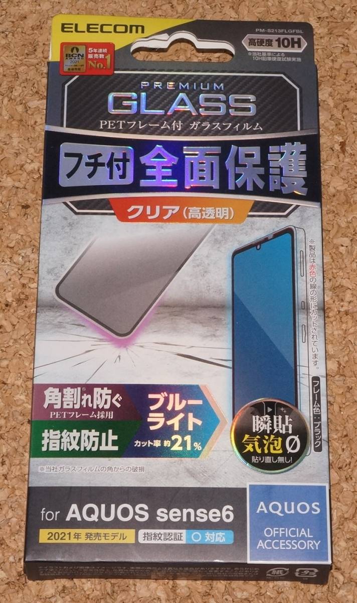 > ★新品★ELECOM AQUOS sense6/6s ガラスフィルム 3D PETフレーム付 ブルーライトカット 高透明 ブラック