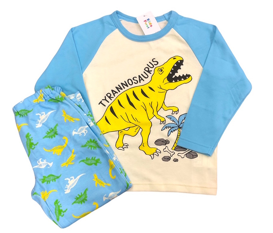 - 即決 新品タグ付キッズフォーレ Kids Foret 子供★恐竜柄 スムース生地★長袖パジャマ 長パンツ★130cm 9-10才目安★¥1650