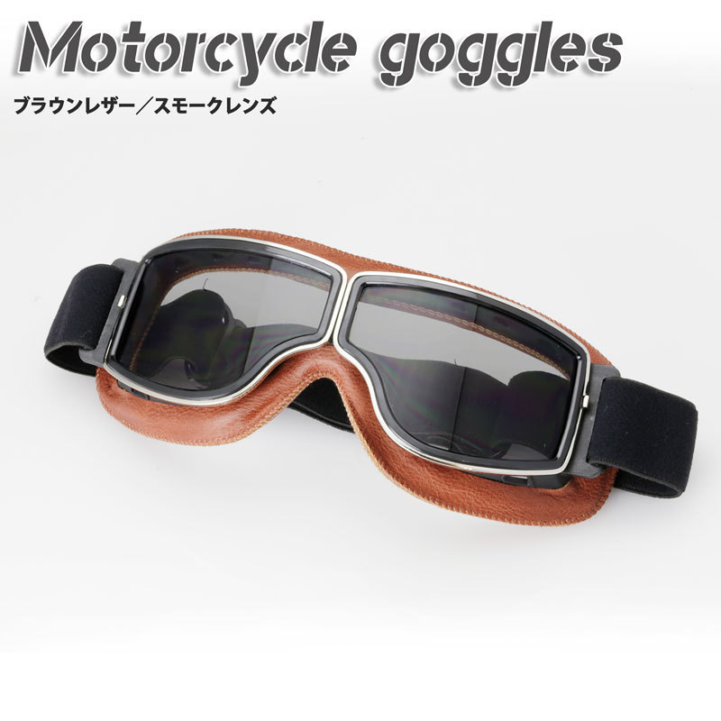 > バイク用ゴーグル(ブラウンレザー・スモークレンズ)ハーレー チョッパー カフェレーサー ボバー フリスコ 送料無料