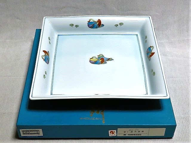 - 青い鳥角盛皿 翔山 SHOUZAN 紙箱 陶器