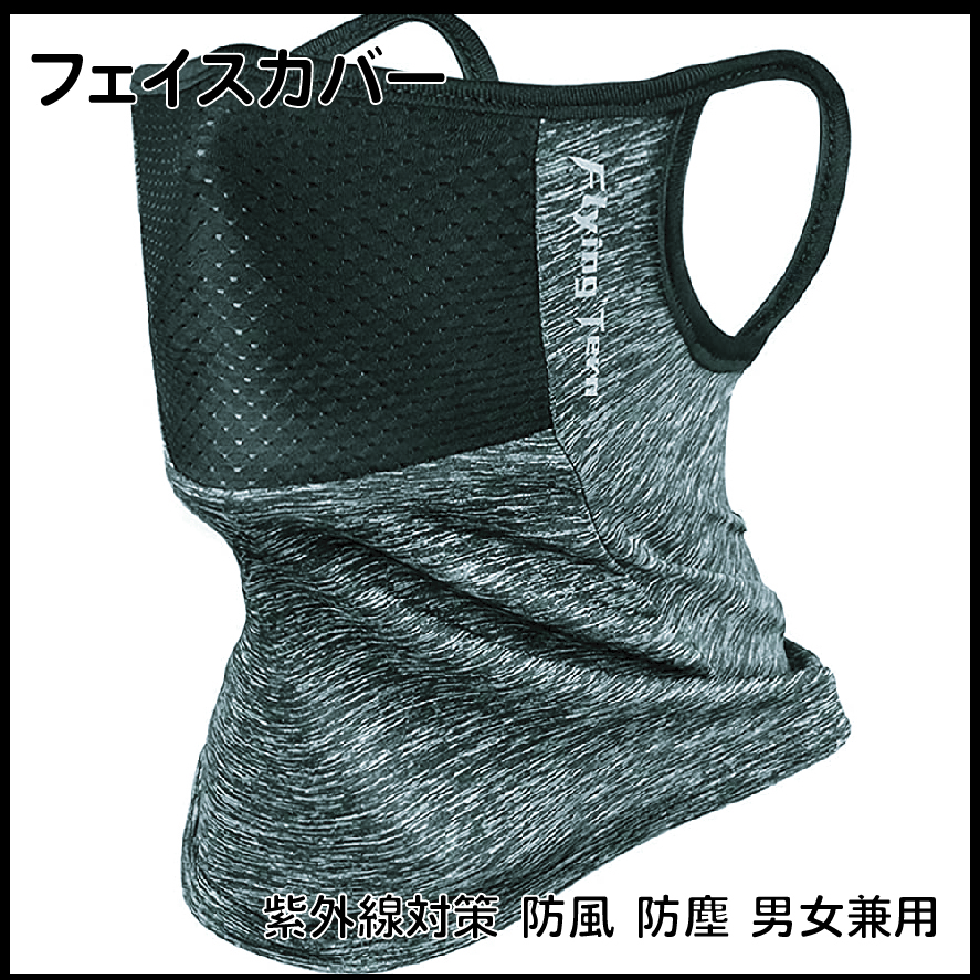 - フェイスカバー ネックガード 夏用【接触冷感-5℃】 耳かけ 呼吸しやすい 紫外線対策 防風 防塵 男女兼用 (ライトグレー)